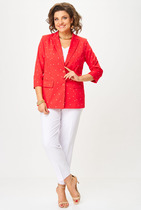 Костюм женский предназначен для повседневной носки. Костюм женский 2-х предметный блузон и юбка-брюки. Блузон прямого силуэта, длиной до линии бёдер с низом "ступенька". Перед с 2-мя нагрудными вытачками. Спинка цельнокроеная. Горловина круглая, обточная, без воротника. Рукав втачной, 2-х шовный, длиной 3/4. Блузон без плечевых накладок. Юбка-брюки длинные, широкие. Передние половинки с карманами в боковых швах с 2-мя зафиксированными односторонними складками с каждой стороны. Задние половинки без конструктивных особенностей. Юбка-брюки с приточным поясом, собранным частично на эластичную тесьму, закреплённую 2-мя отделочными строчками. К костюму прилагается съёмный пояс с пряжкой и 2-ю пробивными блочками. Длина брюк по боковому срезу 93см. Длина спинки блузона 64 см, длина рукава 49 см.