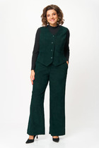 Костюм женский относится к нарядной торжественной одежде. Костюм женский, 2-х предметный жакет и платье. Жакет полу прилегающего силуэта, длиной до линии бёдер. Перед с 2-мя рельефами, выходящими из плечевых швов и до горизонтального надреза, шов притачивания рельефа, декорирован листочкой с бантом, закреплённым пришивной стразой. Спинка со средним швом и 2-мя таллиевыми вытачками. Горловина с фигурным вырезом, низ жакета с закруглёнными концами. Горловина обточная, без воротника. Застёжка центральная бортовая на 1-ну обмётанную петлю и 1-ну пришивную пуговицу. Рукав втачной , 2-х шовный, длиной 3/4. Жакет на притачной подкладке. Жакет с плечевыми накладками. Платье женское полу прилегающего силуэта, длиной за колено, обрезное выше линии талии. Верхняя часть переда с 2-мя отрезными кокетками, с 6-ю таллиевыми вытачками, нижняя часть переда из отделочной ткани, с 2-мя таллиевыми вытачками с надстрочным поясом, декорированным пришивным бантом со стразой. Спинка со средним швом, заканчивающимся шлицей и 2-мя таллиевыми вытачками. Нижняя часть спинки из отделочной ткани. Горловина круглая, обточная без воротника, перед декорирован 8-ю пришивными бусинами, формирующими воздушные складки. Застёжка на потайную тесьму молнию в среднем шве спинки. Рукав втачной, короткий, одно шовный. Платье на подкладке. Платье без плечевых накладок.