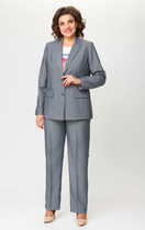 Комплект женский, относится к торжественно-нарядной одежде. Комплект женский, 2-х предметный, жакет и платье. Жакет женский прямого силуэта, длиной до линии талии, выполнен из кружевного полотна. Перед с 2-мя нагрудными вытачками, с 2-мя притачными вертикальными планками, с притачными планками по горловине. Спинка с притачной планкой по горловине. Горловина круглая, обточная, без воротника. Застёжка на декоративный пришивной крючок. Рукав втачной одно шовный, длиной 3/4 с притачной манжетой. Жакет без плечевых накладок. Платье женской длиной за колено, полу прилегающего силуэта. Перед с 2-мя отрезными бочками. Спинка с 2-мя таллиевыми вытачками, со средним швом, заканчивающимся шлицей. Горловина круглая, обточная, без воротника. Застёжка на потайную тесьму-молнию в среднем шве спинки. Рукав втачной, короткий, одно шовный. Платье с плечевыми накладками. Длина спинки жакета 45 см, длина рукава 41 см. Длина спинки платья 100 см, длина рукава 19 см.