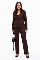 Комплект женский предназначен для повседневной носки. Комплект женский 3-х предметный, жилет, блузка и брюки. Жилет прямого силуэта, длиной ниже линии бёдер на 15 см. Перед с 2-мя нагрудными вытачками, выходящими из плечевых швов, с прорезным карманом с клапаном и 2-мя обтачками на правой части. Спинка со средним швом, заканчивающимся шлицей. Горловина с V-образным вырезом. Застёжка 2-х бортная на потайную петлю и пуговицу и на пояс, закреплённый на уровне линии талии и металлическую пряжку. Проймы обтачные. Жилет на притачной подкладке. Блузка женская прямого силуэта, длиной ниже линии бёдер на 5 см. Перед с 2-мя нагрудными вытачками. Спинка цельнокроеная. Горловина круглая с втачной планкой. Рукав втачной, короткий, одно шовный. Блузка без плечевых накладок. Брюки женские слегка заужены к низу, длиной 7/8. Передние половинки с односторонними складками и карманами в боковых швах, с отрезными бочками. Задние половинки с таллиевыми вытачками. Застёжка центральная на потайную тесьму-молнию. Брюки с притачным поясом, частично собранным на эластичную тесьму, с застёжкой на 1-ну горизонтальную обмётанную петлю и 1-ну пришивную пуговицу. Низ брюк с отложной манжетой, закреплённой по боковому шву. Длина спинки жакета 74,5 см. Длина брюк по боковому срезу 98 см. Длина спинки блузки 63 см, длина рукава 25,5 см.