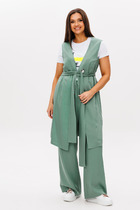 Комплект из костюмной ткани на подкладке, состоящий из жакета и юбки. Жакет приталенного силуэта с прорезными карманами с клапанами по переду. Воротник-английский, рукава - двухшовные. Застегивается на две пуговицы. Юбка на подкладке, слегка зауженная к низу, с рельефами и поясом. Ширина пояса регулируется резинкой. В среднем шве заднего полотнища юбки - застежка-молния и шлица. Кант цвета серебра по краю борта, клапанам жакета и рельефам юбки.