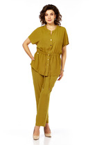 Комплект женский, состоящий из жакета и брюк, выполнен из стрейчевой костюмной ткани на подкладке. Жакет полуприталенного силуэта с рельефами по переду и спинке, отрезной по линии талии, с баской. Карманы-эмитация. Воротник - пиджачного типа. Рукава - втачные, двухшовные. Застежка на 2 пуговицы. Съемная брошь-цветок входит в комплект. Брюки слегка заужены к низу, с поясом. Застегиваются на молнию по переду и одну пуговицу.