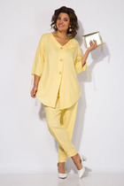 Брючный костюм из костюмной ткани на подкладке. Жакет приталенного силуэта с прорезными карманами с клапанами по переду. Воротник-английский, рукава - двухшовные. Застегивается на две пуговицы. Брюки слегка заужены к низу, с поясом. Посадка- средняя. Застегиваются на молнию по переду и одну пуговицу. Серебряный кант по краю борта, клапанам и боковым швам брюк добавит стиля и элегантности.