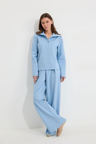 Стильная новинка на весну, несомненный хит будущего сезона- комплект из теплой молочной ткани с геометрией шикарного черного канта. Лаконичный жакет  полуприталенного силуэта с воротником "апаш". Рукава двухшовные, длинные. Застежка на пришивные кнопки. Брюки широкие, со средней посадкой, с кантом по бокам. В поясе резинка  для корректировки объема. Длина брюк-113см (44-46р), 113,5см (48-50р), 114см (52-54р)