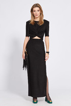 Брючный комплект из костюмной ткани на подкладке. Жакет прямого силуэта с двумя наклонными вытачками и двумя прорезными карманами с листочками. Рукава - длинные, двухшовные. Жакет застегивается на 1 пуговицу. Брюки прямые с широким поясом-обтачкой, наклонными карманами и молнией по переду.