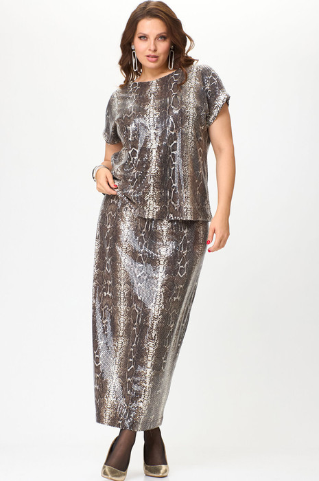 Костюм выполнен из трикотажного полотна  с пайетками.