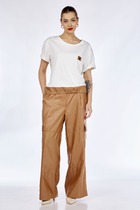 Костюм майка с шортами. Майка с подрезом под грудью, кокетка притачена внахлест и закреплена тремя пуговками. Горловина и проймы обработаны окантовкой, окантовка вышита мережкой. Шорты свободного покроя, боковые швы зашиты внахлест. Шорты обработаны окантовкой с мережкой.