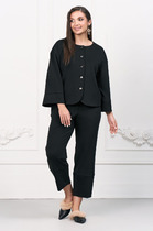 Костюм женский трехпредметный, состоящий из кардигана, топа и брюк.