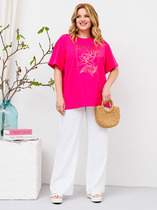 Джемпер прямого силуэта с длинным втачным рукавом. Горловина обработана бейкой. По низу рукавов притачная манжета. В боковых швах разрезы.