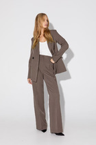Комплект 2-х предметный,  состоящий из жакета  и юбки. Жакет однобортный на подкладке. По переду обработаны рельефы и прорезные карманы с листочкой. Спинка со средним швом и рельефами. Рукав втачной двухшовный с обтачной шлицей в локтевом шве.  На шлицах рукавов пришиты по три декоративные пуговицы. Горловина обработана обтачкой. Застежка на 4 пробивные  петли и 4 пуговицы. Длина по спинке 60 (+-1) см., длина рукава р-р 52-56 - 60 (+-1) см.,