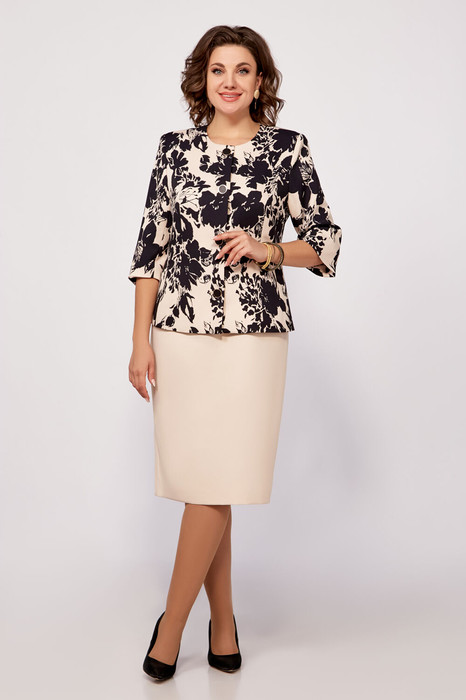 Совместные покупки Тюмень Женская одежда Костюмы, комплекты — Костюм Swallow 797-Р бежевый/принт черные цветы