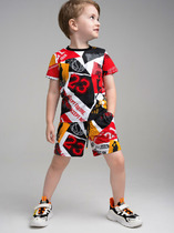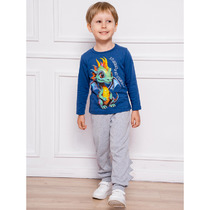 Костюм из кулирки для мальчиков футболка с длинным рукавом + брюки. Серая футболка с длинными рукавами до запястий, цветная окантовка горловины, принт в виде смайла и надписей. Цветные клетчатые брюки, длина до щиколоток. Может быть парой мужскому костюму Папочка (продается отдельно)