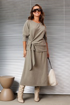 Комплект женский, 2х предметный, состоящий из рубашки и брюк. Рубашка прямого силуэта с длинным рукавом. Рукав двухшовный, со спущенной линией плеча, по низу на манжете. Застежка манжеты на кнопку. Горловина оформлена рубашечным воротником. Застежка центральная на кнопки. Перед задекорирован вышивкой с паетками. По спинке кокетка с отделочной нашивкой. Низ рубашки разноуровневый, по спинке длиннее. По бокам разрезы. Брюки прямые, с накладными карманами спереди. Пояс притачной с резинкой по кругу.