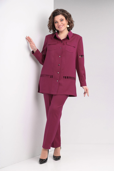 Женский брючный комплект-двойка. Выполнен из стрейчевой плательно-костюмной ткани «барби». Свободный, элегантный крой и яркие цвета придают костюму выразительность и универсальность.
