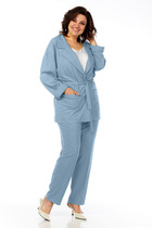 Длина жакета от центра горловины спинки до низа: 72,5-73 см. Длина рукава: 43 см. Длина брюк по боковому шву без учёта пояса: 99 см.