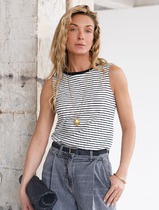 Костюм молодежный из штапельного полотна с набивным рисунком «полоска», состоящий из блузки-рубашки и шорт.Блузка-рубашка свободного кроя, со стояче-отложным воротником, спущенным длинным рукавом. Перед из двух частей с центральной бортовой застежкой на петли и пуговицы, спинка цельнокроеная. Низ рукава с притачной манжетой, застегивающейся на петлю и пуговицу.Шорты свободные, средней длины, на притачном поясе с эластичной тесьмой внутри, карманами в боковых швах.
