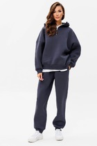Костюм женский двухпредметный, состоящий из жакета без подкладки с капюшоном и прямых брюк с защипами.