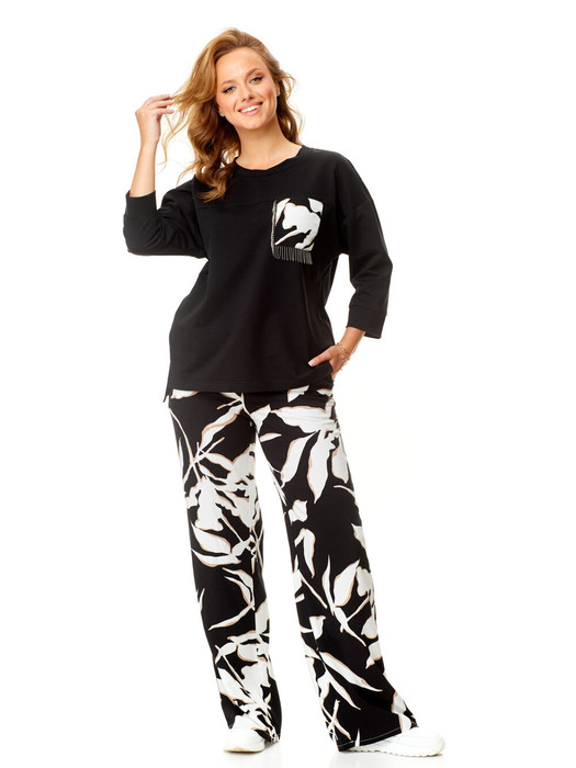 Состав: Джемпер- Вискоза-24%; Хлопок-70%; Эластан-6%; Брюки- Вискоза-65%; Спандекс-5%; Хлопок-30%;