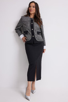 Низ рукава обработан отрезной манжетой на резинке и декоративными патами с застежкой на кнопку.