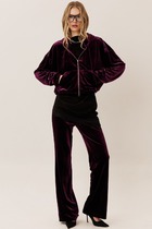 Жакет полуприлегающего силуэта с естественной линией плеча. Спинка со средним швом и рельефами из плеча. Перед с рельефами из плеча и прорезными карманами. Застежка центрально-бортовая на петлю-пуговицу. Горловина углубленная авторской формы. Рукав втачной длинный. В локтевом шве рукава обработана отлетная шлица с отделочными пуговицами.