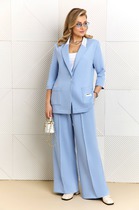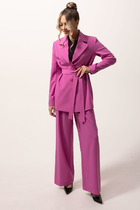 Брюки свободные расширенного силуэта. По бокам выполнены лампасы из полотна с пайетками. Пояс притачной на резинке. В боковых швах карманы.