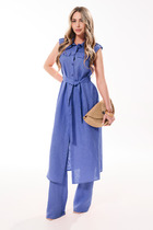 Комплект женский состоит из жакета, топа и брюк.