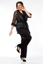 В элегантном летнем костюме, который состоит из удлинённого блузона и свободных брюк на резинке, вы всегда будете в центре внимания! Костюм сшит из непрозрачного струящегося материала. Лиф блузона скроен на запах в два слоя спереди и сзади, поэтому блузон не просвечивает, а удлинённые полочки красиво развиваются при ходьбе.