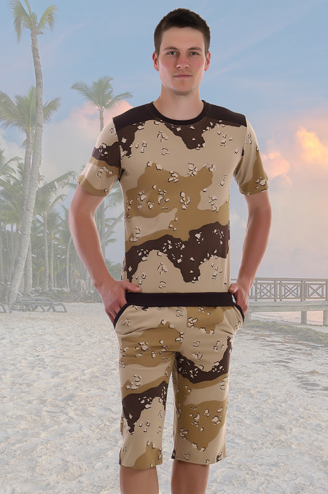 Костюм мужской футболка + шорты. Футболка в стиле «милитари», по низу манжета, короткие рукава, свободный покрой. Шорты с карманами, аналогичный дизайн, длина чуть ниже коленей. Размеры от 48 до 58. Есть возможность заказа в розницу.