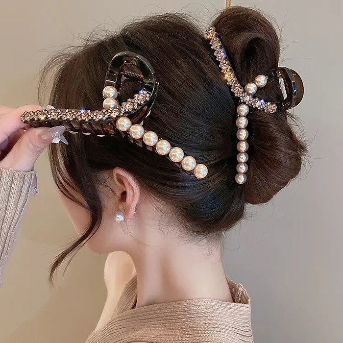 Совместные покупки Тюмень Косметика и парфюмерия Прочий макияж — Краб для волос петелька со Стразами и Бусинами, 13 см.