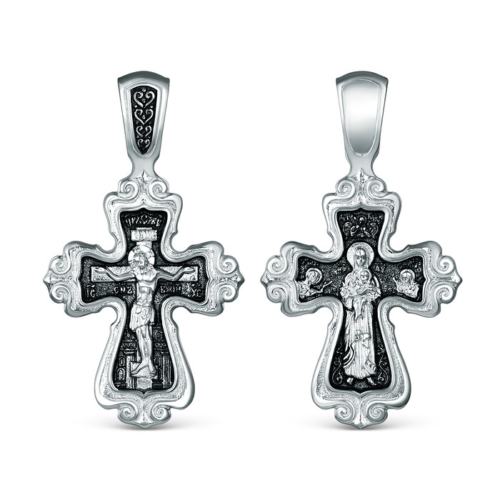 Совместные покупки Тюмень Ювелирные украшения и бижутерия Подвески — Крест двусторонний из чернёного серебра - Спаситель, Богоматерь 4,1 см 925 пробы