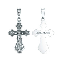 Крест православный из чернёного серебра - Спаси и сохрани 3,6 см 925 пробы 00-00