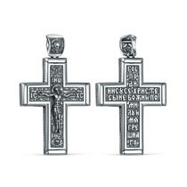 Крест из чернёного серебра - Распятие, Спаc Неpукотвоpный, Спаси и сохрани, Иису
