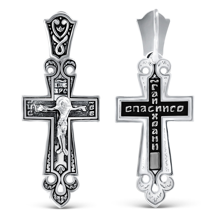 Совместные покупки Тюмень Ювелирные украшения и бижутерия Подвески — Крест из серебра с частичным чернением - 4,5 см 925 пробы К3-104чч