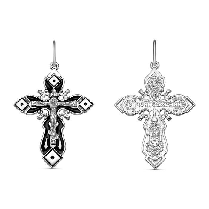 Совместные покупки Тюмень Ювелирные украшения и бижутерия Подвески — Крест из серебра с эмалью родированный - 4,3 см 925 пробы Кр-728 Э р