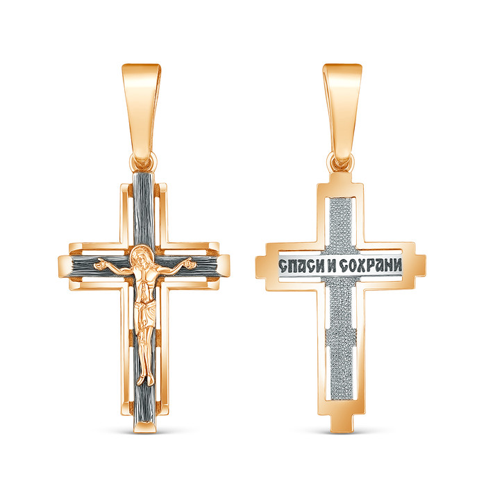 Совместные покупки Тюмень Ювелирные украшения и бижутерия Подвески — Крест из золочёного серебра с чернением - 4,7 см 925 пробы 3-287чз