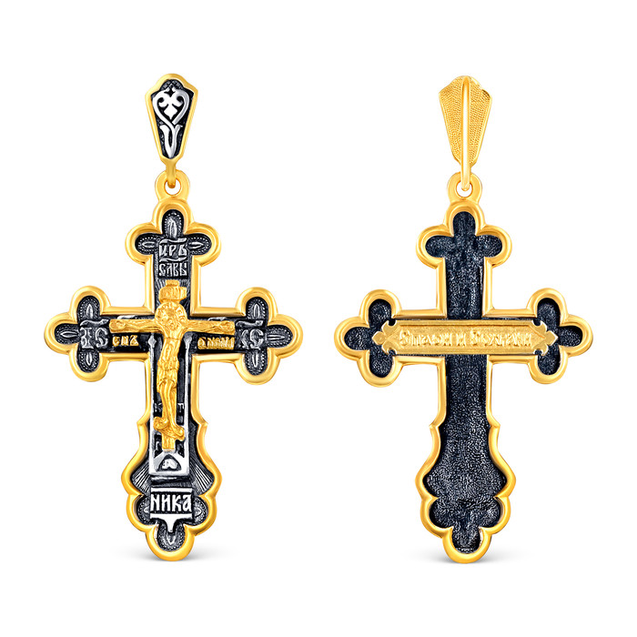 Совместные покупки Тюмень Ювелирные украшения и бижутерия Подвески — Крест из золочёного серебра с чернением - 7,5 см 925 пробы 3-182чз