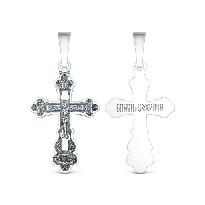 Совместные покупки Тюмень Ювелирные украшения и бижутерия Подвески — Крест православный из чернёного серебра - Спаси и сохрани 3,4 см 925 пробы 00-00