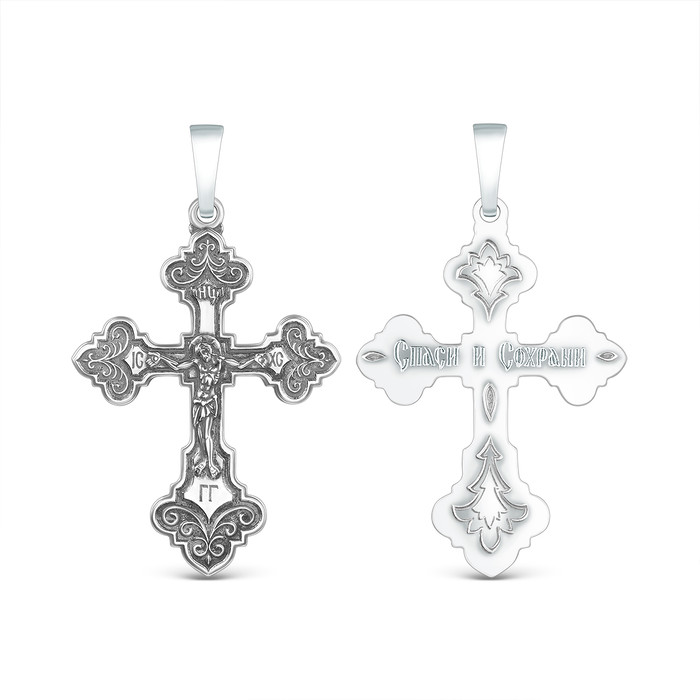 Совместные покупки Тюмень Ювелирные украшения и бижутерия Подвески — Крест православный из чернёного серебра - Спаси и сохрани 4,3 см 925 пробы 00-00