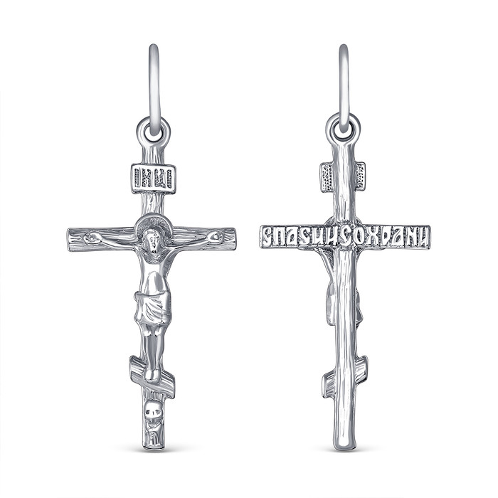 Совместные покупки Тюмень Ювелирные украшения и бижутерия Подвески — Крест православный из серебра родированный - Спаси и сохрани 3,3 см 925 пробы 2-