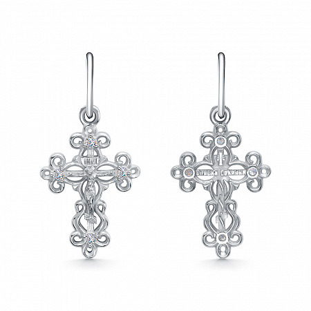 Крест с фианитом родированный серебро 925*