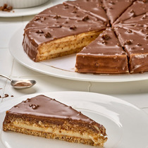 Яркий десерт с экзотическими фруктами: бисквит пропитанный сиропом, нежный сливочный крем, конфитюр на основе манго и маракуйя.