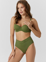Интригующий купальный костюм в одном из самых модных сегодня стилей - Латино. В комплект входит бюстгальтер, завязанный на спине, который имитирует топ на одно плечо. Декольте с большим воздушным воланом, выполненным из легкой итальянской ткани, выглядит феноменально. Красивая, летняя расцветка. Бюстгальтер без косточек, чашки уплотнённые, скрытые на внутренней стороне топа, благодаря им грудь выглядит привлекательно. Чашки можно вынуть из модели, создавая тем самым версию "софт" бюстгальтера. Трусы на очень хорошей высоте, они очень удобны и украшены заманчивыми разрезами по бокам. Состав: 80% полиамид, 20% эластан.Размер Обхват под грудью Обхват по груди Объём бёдер Высота трусов