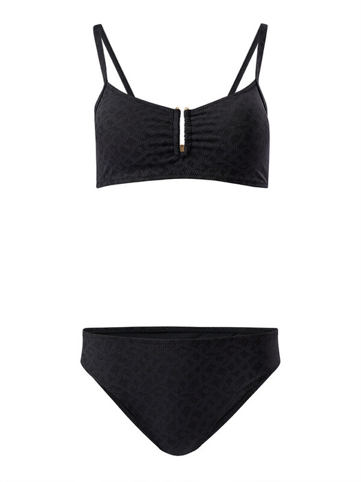 Лиф с U-образным вырезом, съемными формованными вкладышами из тонкого поролона и лаконичным металлическим аксессуаром обеспечивает комфортную поддержку и создает эффект идеально округлой груди. Плавки «слипы» со средней линией талии изящно подчеркивают бедра.