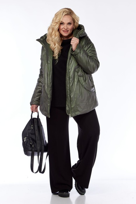 Куртка женская свободного кроя "О" образного силуэта с округлой линией низа и застежки на "молнию". Перед с рельефными швами и отлетными деталями, в которых обработаны боковые карманы. Спинка с вертикальными рельефами и отделочными деталями. Рукав втачной одношовный со спущенной линией плеча. Воротник-капюшон.
