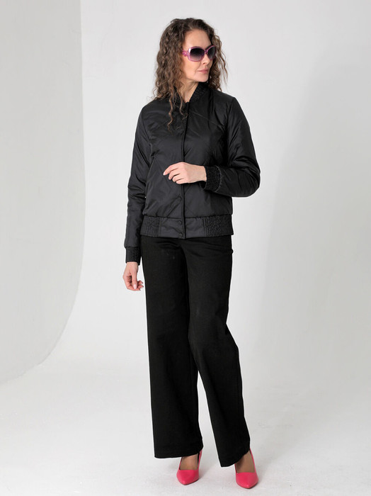 Модная демисезонная куртка прямого силуэта с застежкой на кнопки подойдет для женщин и девушек любого возраста. Прорезные карманы застегиваются на молнию. Есть внутренний кармашек, тоже на молнии. Эта легкая весенняя куртка-бомбер с эффектной резинкой на поясе, манжетах и стойке выручит Вас на прогулке, на отдыхе и в городе. Плащевая ткань имеет водоотталкивающую пропитку, которая выдержит небольшой дождь и легкий ветер. Хорошо зарекомендовавший себя утеплитель Альполюкс (с содержанием овечьей шерсти), плотностью 100 гр/м, защитит от весенней прохлады. Подкладка в изделии выполнена из ткани в мелкую полоску. Фантазируйте с обувью и аксессуарами, и эта стильная куртка станет любимой вещью Вашего гардероба.