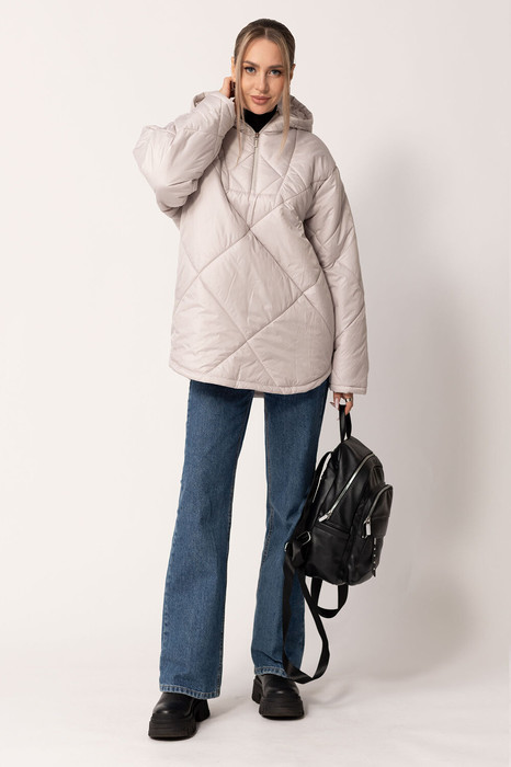 Куртка утепленная, с центральной застежкой на молнию по вставке переда, с втачным капюшоном. В боковых швах расположены карманы. Рукав втачной. Плечо спущенное. Линия низа фигурная.