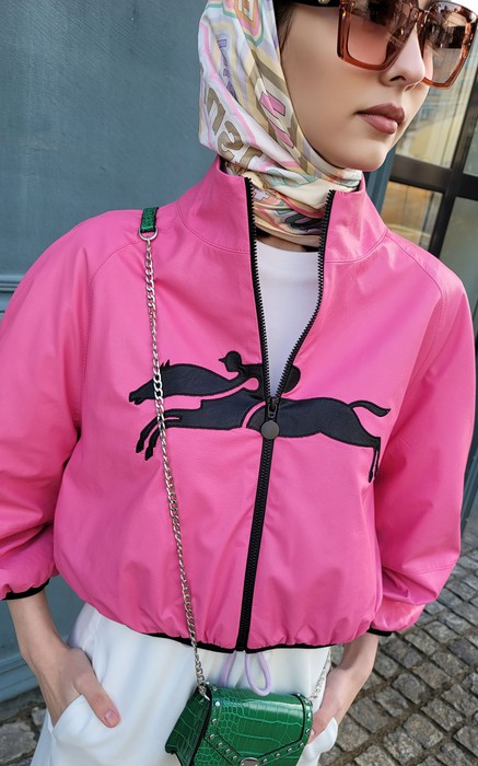 Куртка свободного силуэта из экокожи, на подкладке. Рукав реглан 3/4, объёмный с подрезом в области локтя, низ у рукава сосборен на эластичную тесьму. По горловине воротник стойка, застёжка на молнию. По переду аппликативная вышивка из экокожи, низ куртки сосборен на эластичную тесьму.