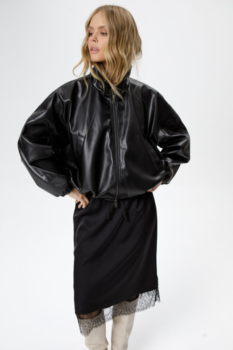 Детали: О-силуэт, расширенное плечо, высокий воротник стойка, пояс бомбера и манжеты на резинке, застёжка на молнию, функциональные карманы, куртка на подкладке.
