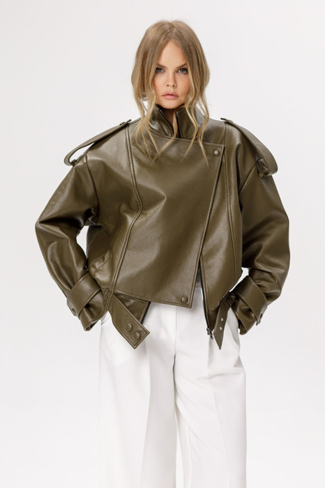 Куртка оверсайз из лакированной экокожи.