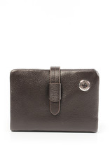 Кошелек женский выполнен из натуральной кожи. Детали: кошелек закрывается на срытый магнит, 2 открытых отделения для купюр, 1 отделение для купюр на молнии, 2 кармана, 4отделения для визиток или карт, 1 отделение с прозрачным окошком для карты или проездного, 1 отделение на замке фермуар для монет. Фурнитура серебристого цвета. Упаковка: фирменная белая коробка.